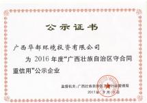 2016年度“廣西壯族自治區(qū)守合同重信用”企業(yè)